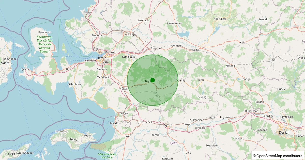 Son 7 gün içinde Bayındır - Turan noktasından 100 km yarıçap içerisinde meydana gelen diğer depremler: