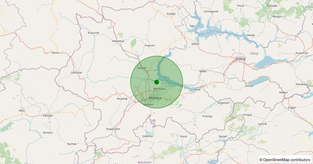 Son 7 gün içinde Battalgazi - Hasırcı Köyü noktasından 100 km yarıçap içerisinde meydana gelen diğer depremler: