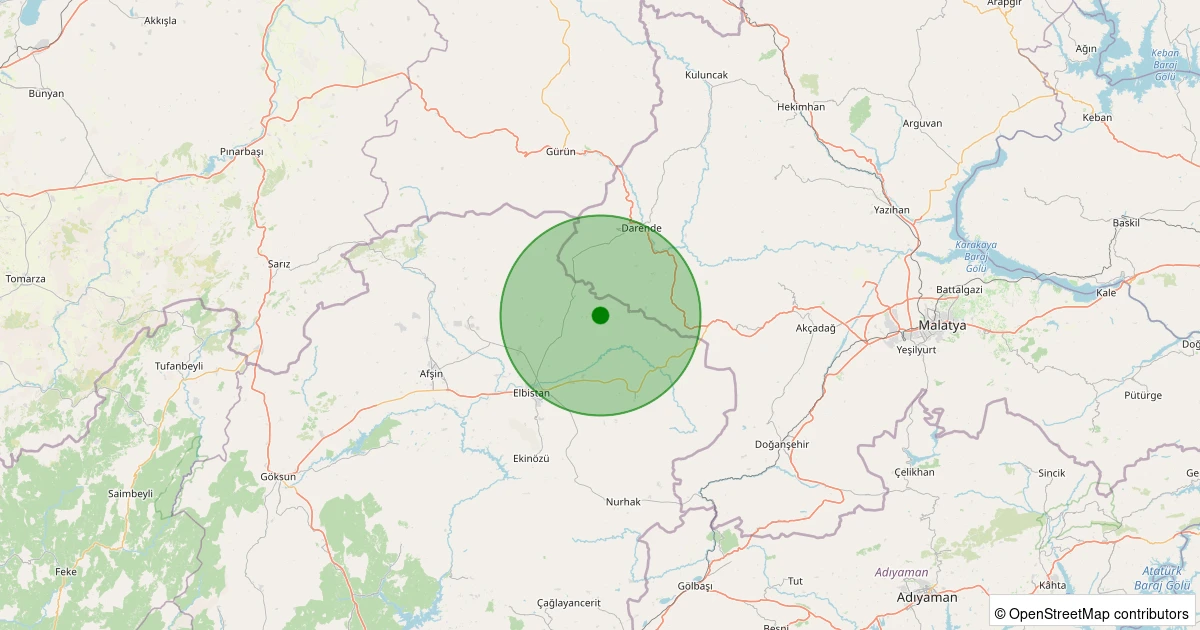 Son 7 gün içinde Elbistan - Yalıntaş Köyü noktasından 100 km yarıçap içerisinde meydana gelen diğer depremler: