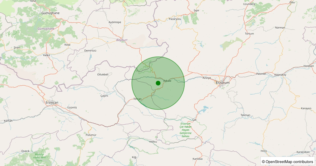 Son 7 gün içinde Aşkale - Topalçavuş noktasından 100 km yarıçap içerisinde meydana gelen diğer depremler: