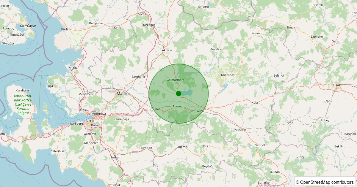 Son 7 gün içinde Saruhanlı - Büyükbelen noktasından 100 km yarıçap içerisinde meydana gelen diğer depremler: