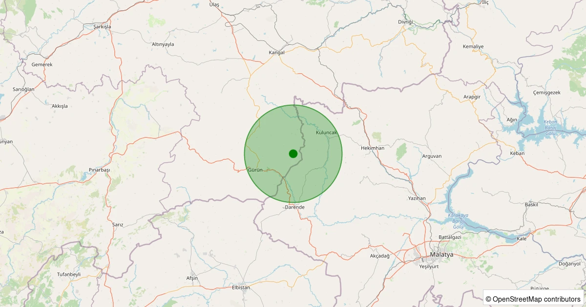 Son 7 gün içinde Gürün - Bağlıçay Köyü noktasından 100 km yarıçap içerisinde meydana gelen diğer depremler: