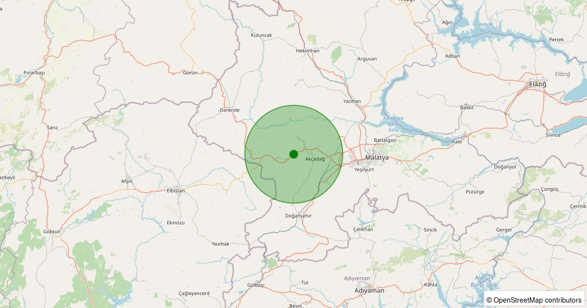 Son 7 gün içinde Akçadağ - Bayramuşağı noktasından 100 km yarıçap içerisinde meydana gelen diğer depremler: