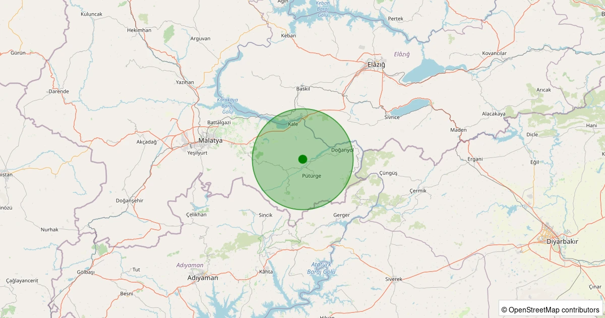 Son 7 gün içinde Pütürge - Aktarla Köyü noktasından 100 km yarıçap içerisinde meydana gelen diğer depremler:
