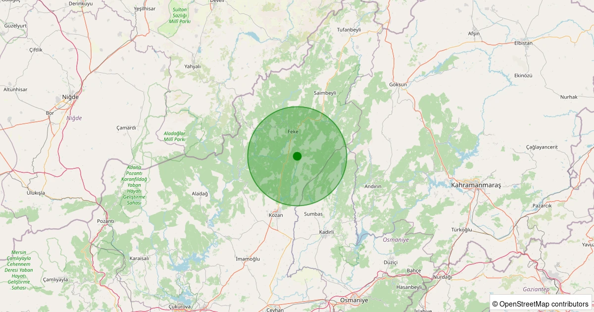 EMSC üzerinden alınan ölçümlere göre Feke - Uğurlubağ bölgesinde 24.01.2026 02:56 tarihinde gece saatlerinde 1.2 büyüklüğünde bir deprem meydana geldi.