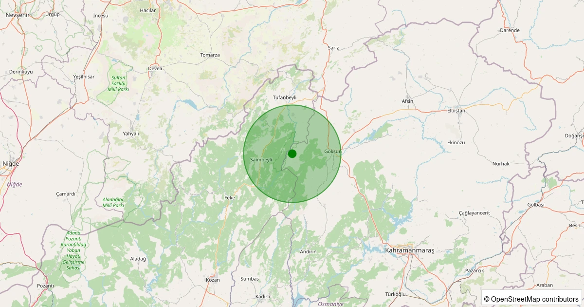 Son 7 gün içinde Göksun - Kaleboynu noktasından 100 km yarıçap içerisinde meydana gelen diğer depremler: