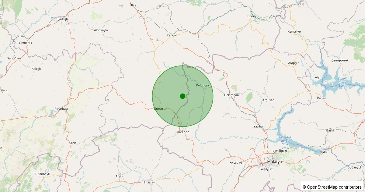 Son 7 gün içinde Gürün - Eskihamal Köyü noktasından 100 km yarıçap içerisinde meydana gelen diğer depremler: