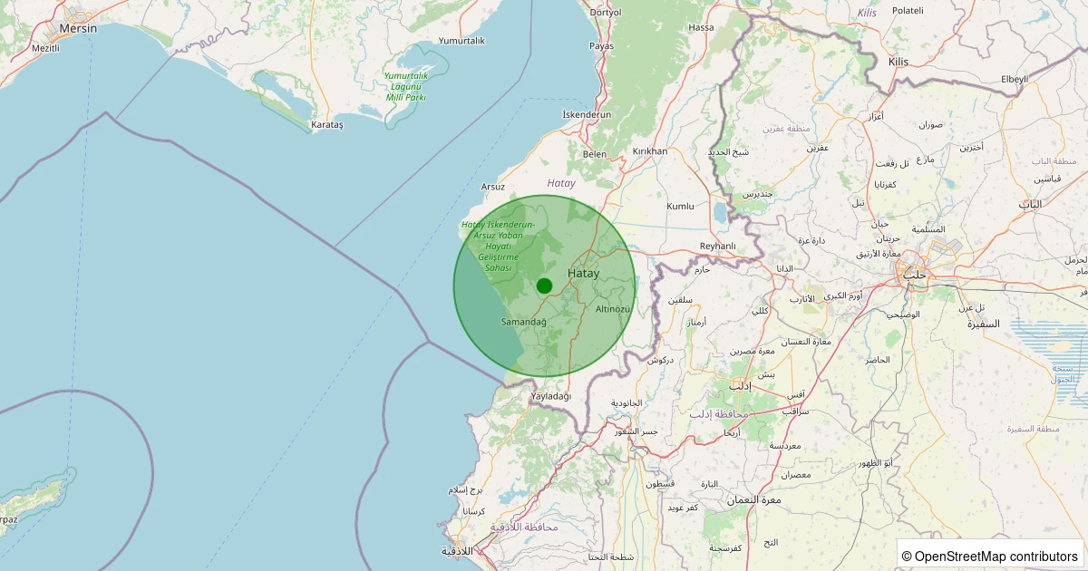 Son 7 gün içinde Samandağ - Çanakoluk noktasından 100 km yarıçap içerisinde meydana gelen diğer depremler:
