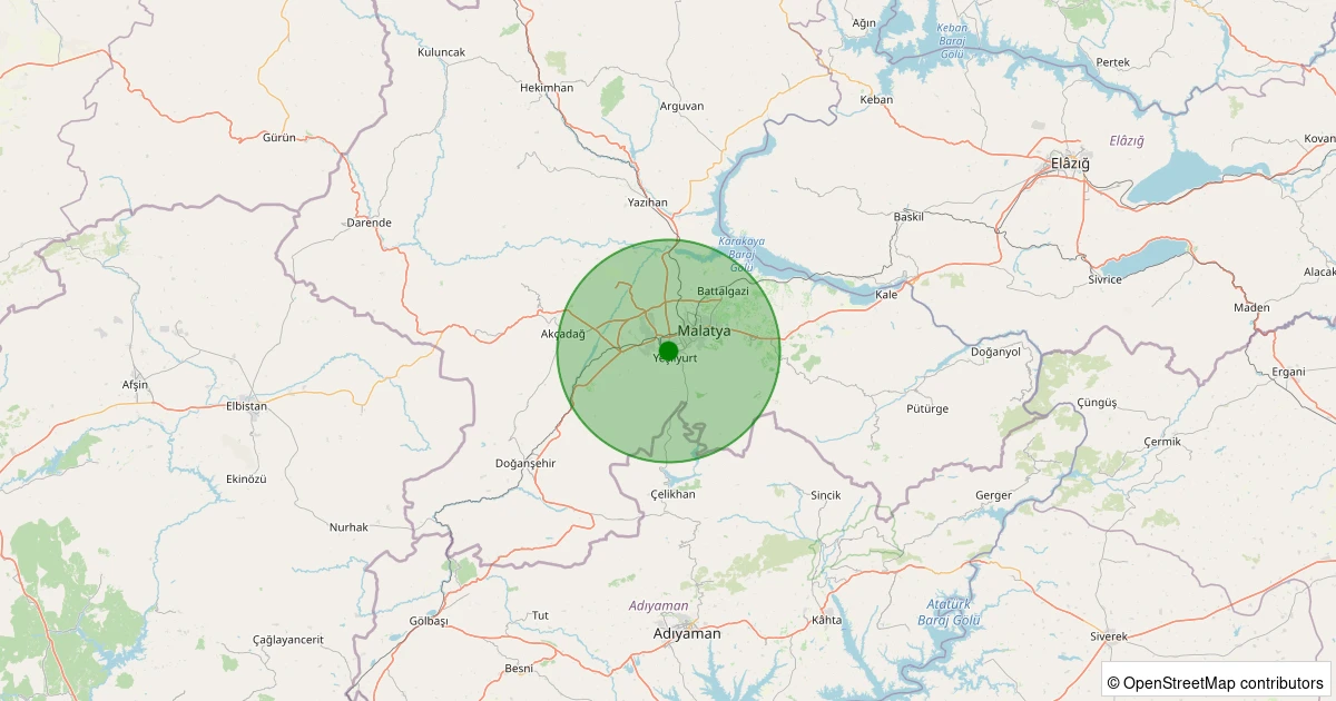 Son 7 gün içinde Yeşilyurt - Yakınca noktasından 100 km yarıçap içerisinde meydana gelen diğer depremler: