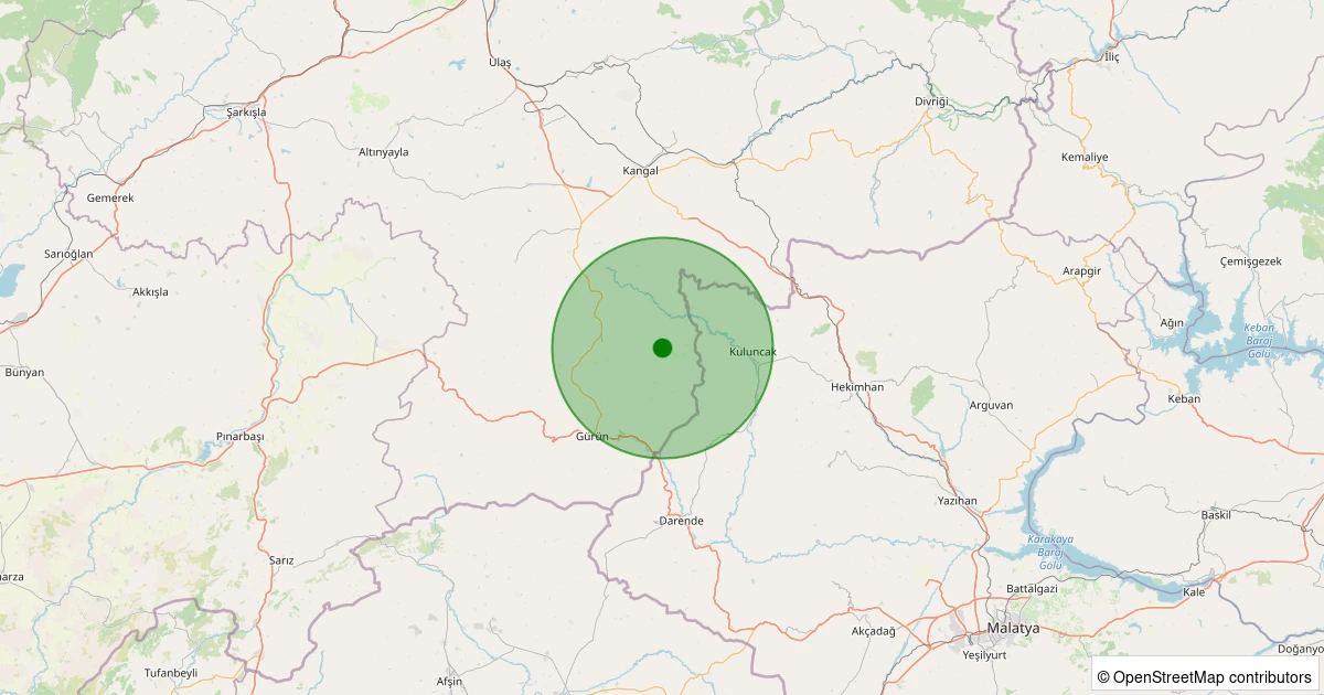 Son 7 gün içinde Gürün - Eskihamal Köyü noktasından 100 km yarıçap içerisinde meydana gelen diğer depremler: