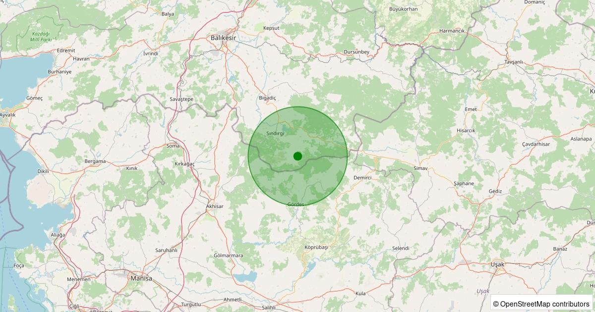 Son 7 gün içinde Sındırgı - Yüreğil/Merkez noktasından 100 km yarıçap içerisinde meydana gelen diğer depremler: