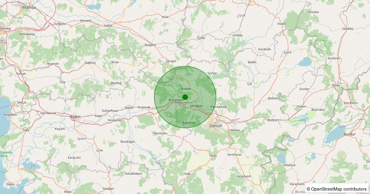 Son 7 gün içinde Buharkent - Kızıldere noktasından 100 km yarıçap içerisinde meydana gelen diğer depremler: