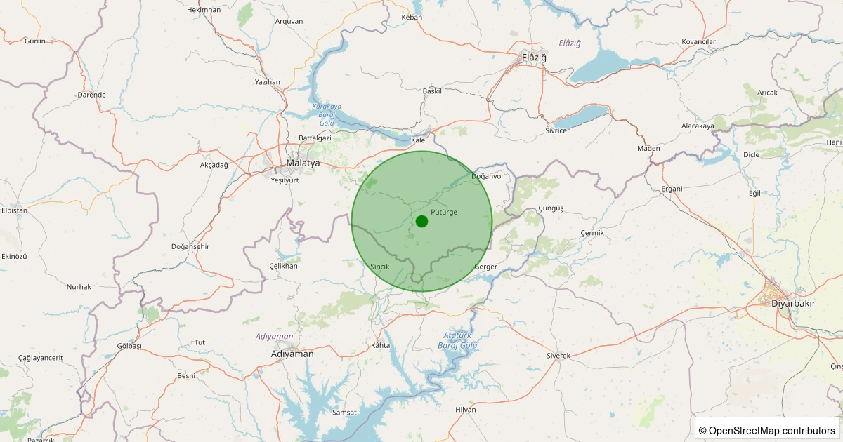Son 7 gün içinde Pütürge - Tepehan/Arguça noktasından 100 km yarıçap içerisinde meydana gelen diğer depremler: