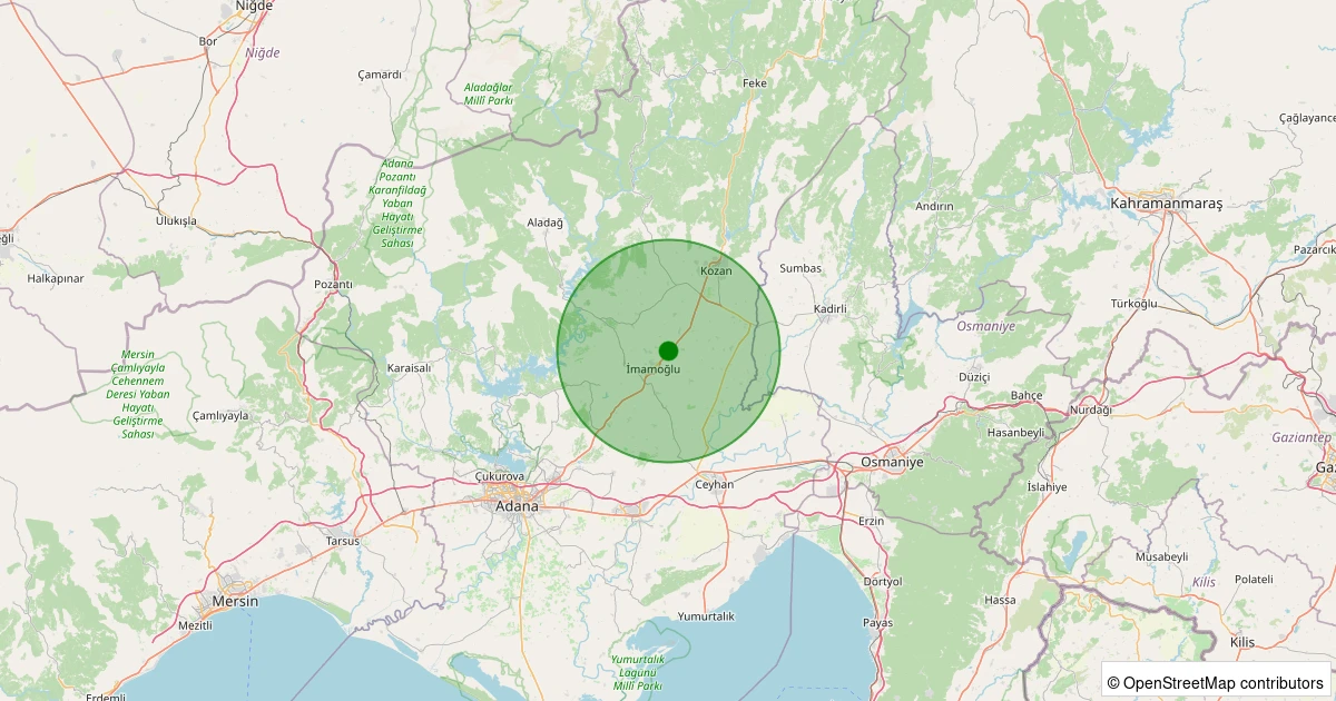 Son 7 gün içinde İmamoğlu - Koyunevi Köyü noktasından 100 km yarıçap içerisinde meydana gelen diğer depremler: