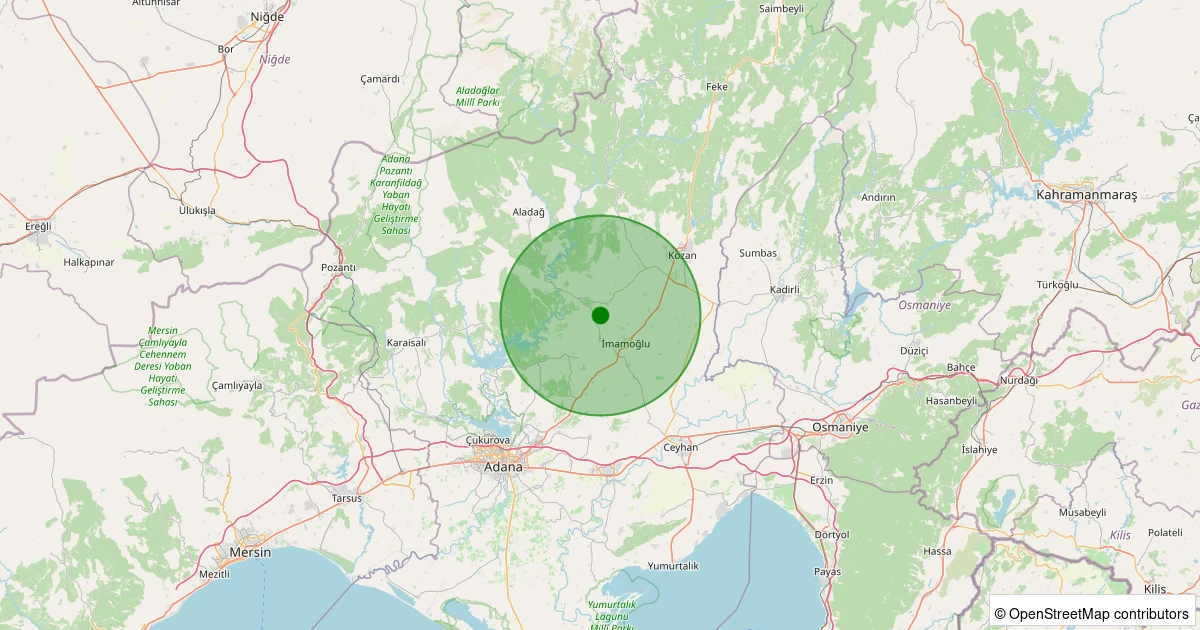 Son 7 gün içinde İmamoğlu - Alaybeyi Köyü noktasından 100 km yarıçap içerisinde meydana gelen diğer depremler:
