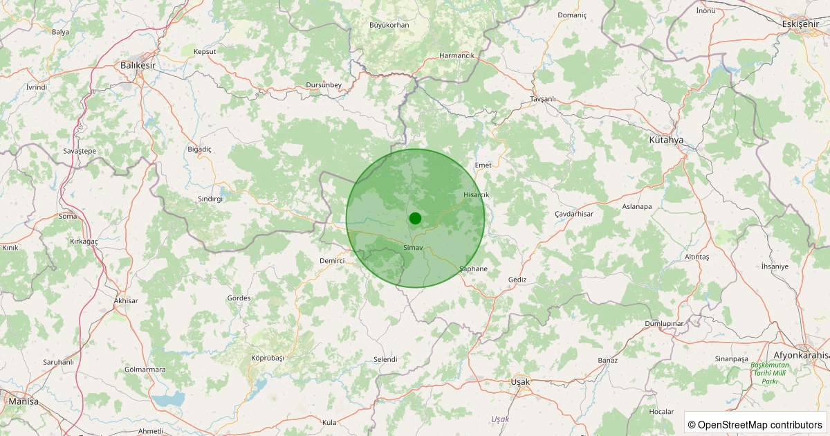 Son 7 gün içinde Simav - Naşa/Fatih noktasından 100 km yarıçap içerisinde meydana gelen diğer depremler: