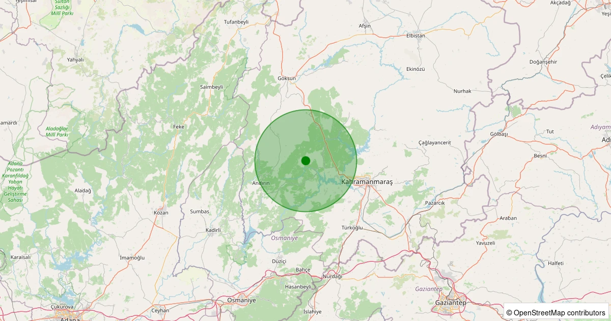 Son 7 gün içinde Onikişubat - Köşürge noktasından 100 km yarıçap içerisinde meydana gelen diğer depremler: