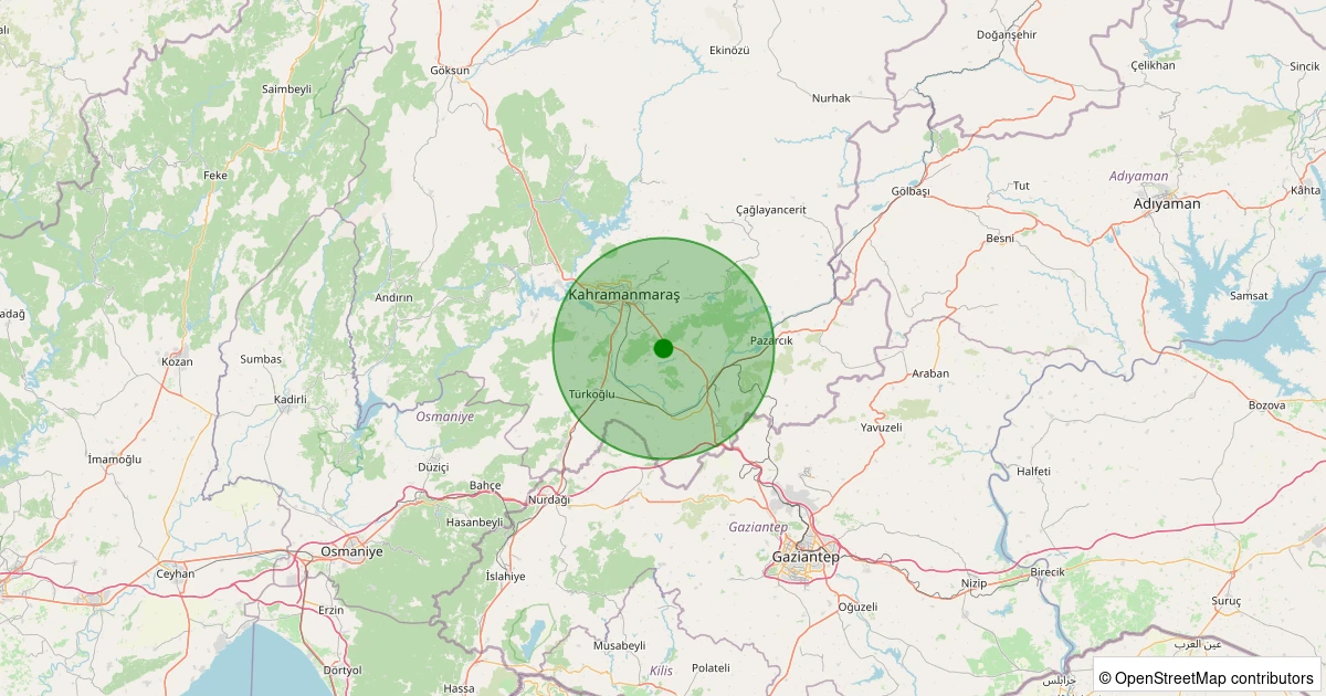 Son 7 gün içinde Dulkadiroğlu - Kapıçam noktasından 100 km yarıçap içerisinde meydana gelen diğer depremler: