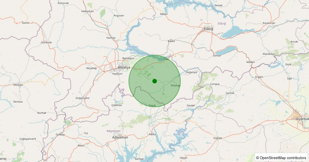 Son 7 gün içinde Pütürge - Söğütlü Köyü noktasından 100 km yarıçap içerisinde meydana gelen diğer depremler: