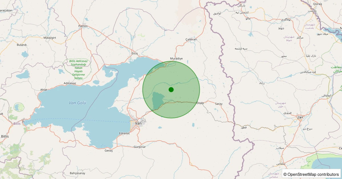 Son 7 gün içinde Muradiye - Doğangün noktasından 100 km yarıçap içerisinde meydana gelen diğer depremler: