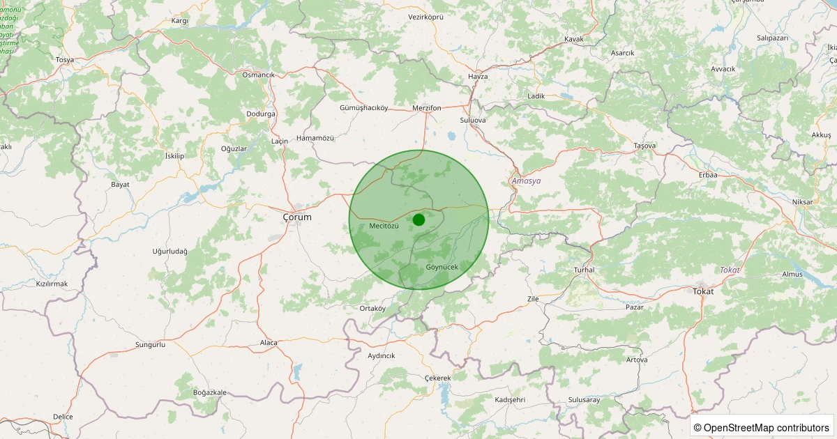 Son 7 gün içinde Mecitözü - Kayı Köyü noktasından 100 km yarıçap içerisinde meydana gelen diğer depremler: