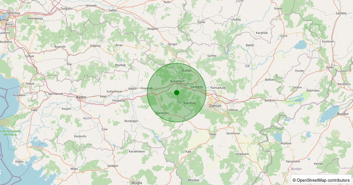 Son 7 gün içinde Sarayköy - Tırkaz Köyü noktasından 100 km yarıçap içerisinde meydana gelen diğer depremler: