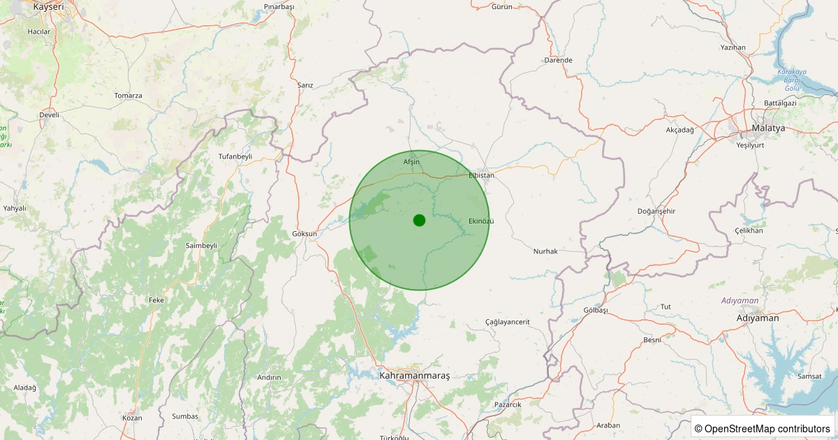 Son 7 gün içinde Göksun - Karadut noktasından 100 km yarıçap içerisinde meydana gelen diğer depremler: