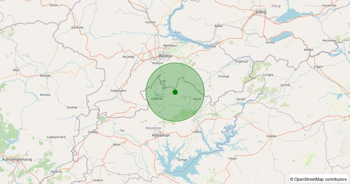 Son 7 gün içinde Çelikhan - Karagöl Köyü noktasından 100 km yarıçap içerisinde meydana gelen diğer depremler: