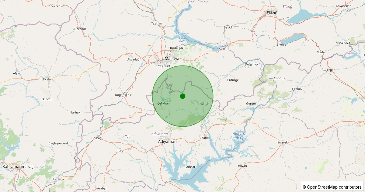Son 7 gün içinde Çelikhan - Karagöl Köyü noktasından 100 km yarıçap içerisinde meydana gelen diğer depremler: