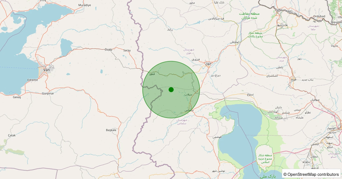Son 7 gün içinde Salmas, West Azarbaijan (İran) - [13.98 km] Başkale (Van) noktasından 100 km yarıçap içerisinde meydana gelen diğer depremler: