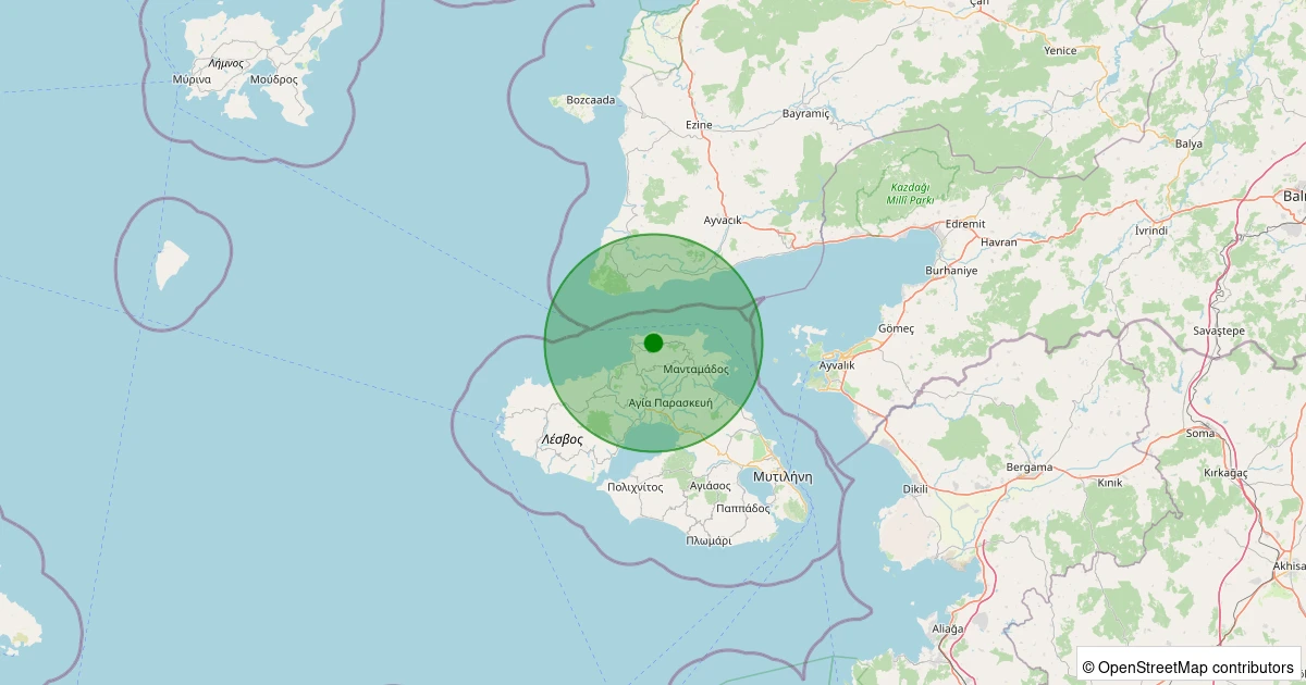 Son 7 gün içinde MIDILLI noktasından 100 km yarıçap içerisinde meydana gelen diğer depremler: