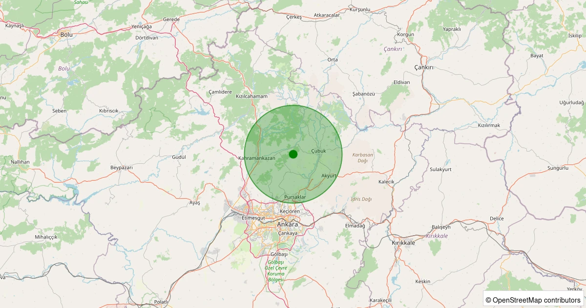 Son 7 gün içinde Çubuk - Gümüşyayla noktasından 100 km yarıçap içerisinde meydana gelen diğer depremler: