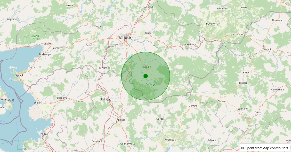 Son 7 gün içinde Sındırgı - Armutlu noktasından 100 km yarıçap içerisinde meydana gelen diğer depremler: