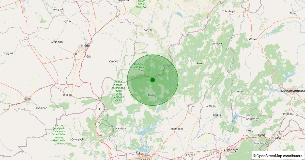 Son 7 gün içinde Aladağ noktasından 100 km yarıçap içerisinde meydana gelen diğer depremler: