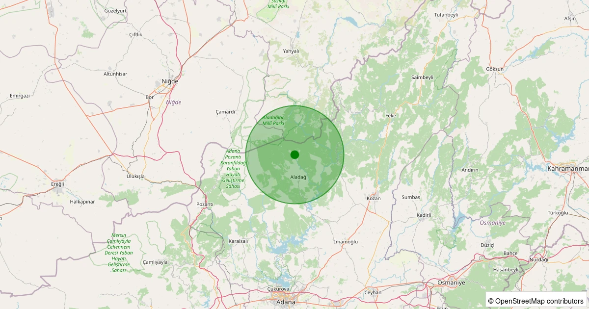 Son bir hafta içerisinde Adana şehri Aladağ noktasından 100 km yarıçap içerisinde toplamda 47 deprem kaydedilmiştir. Bu depremlerden en büyüğü 2.4 büyüklüğünde ve en sığ odaklısı 4.50 kilometre derinlikte gerçekleşmiştir.