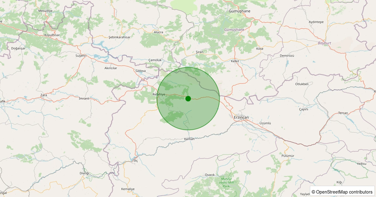Son 7 gün içinde Refahiye - Yurtbaşı Köyü noktasından 100 km yarıçap içerisinde meydana gelen diğer depremler: