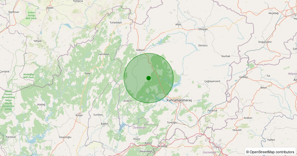 Son 7 gün içinde Onikişubat - Çukurhisar noktasından 100 km yarıçap içerisinde meydana gelen diğer depremler: