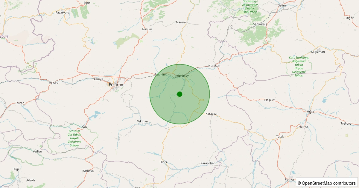 Son 7 gün içinde Köprüköy - Kayabaşı noktasından 100 km yarıçap içerisinde meydana gelen diğer depremler: