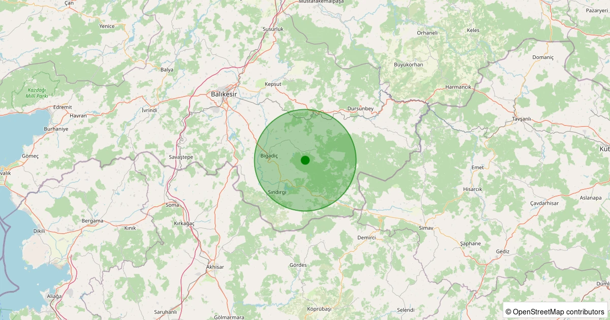 Son bir hafta içerisinde Balıkesir şehri Bigadiç - Okçular noktasından 100 km yarıçap içerisinde toplamda 1341 deprem kaydedilmiştir. Bu depremlerden en büyüğü 3.9 büyüklüğünde ve en sığ odaklısı 0.00 kilometre derinlikte gerçekleşmiştir.