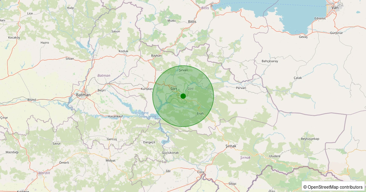 Son bir hafta içerisinde Siirt şehri Merkez noktasından 100 km yarıçap içerisinde toplamda 7 deprem kaydedilmiştir. Bu depremlerden en büyüğü 1.5 büyüklüğünde ve en sığ odaklısı 6.80 kilometre derinlikte gerçekleşmiştir.