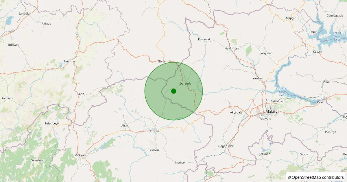 Son 7 gün içinde Darende - Palanga noktasından 100 km yarıçap içerisinde meydana gelen diğer depremler: