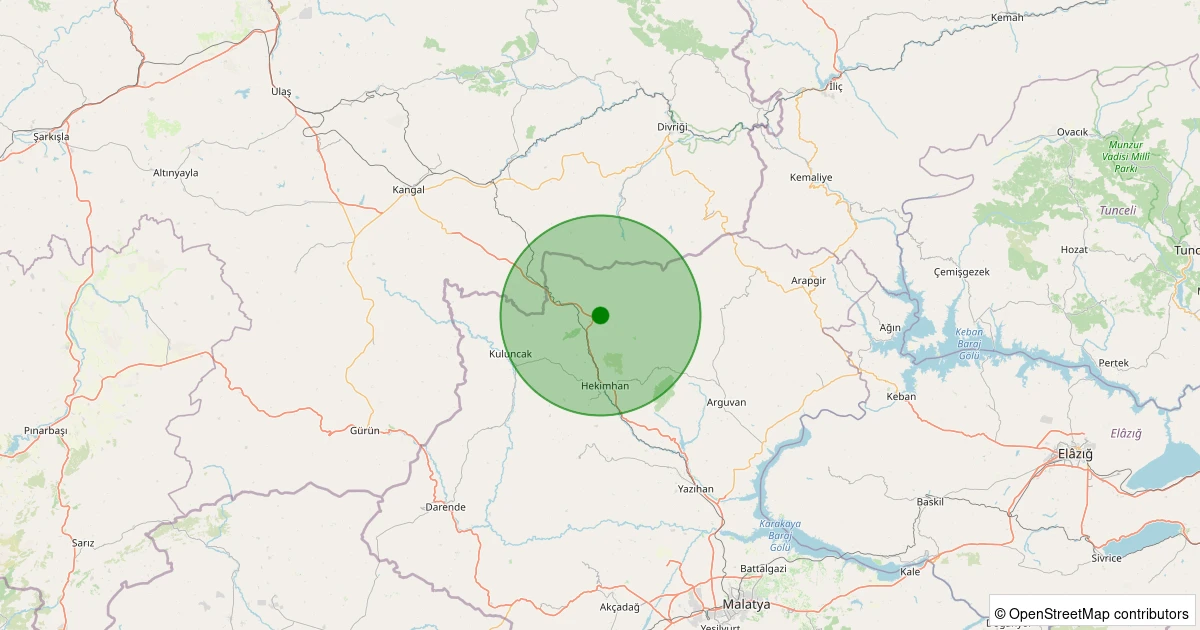 Son 7 gün içinde Hekimhan - Başkınık Köyü noktasından 100 km yarıçap içerisinde meydana gelen diğer depremler: