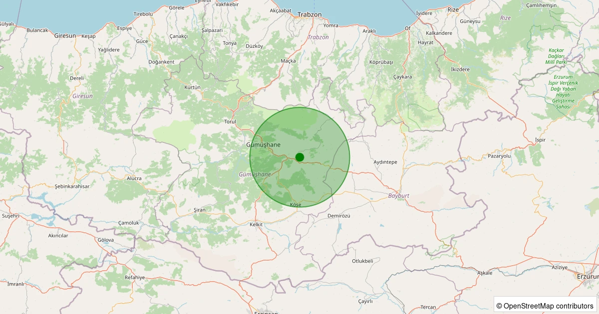 Son bir hafta içerisinde Gümüşhane şehri Merkez - Arzular noktasından 100 km yarıçap içerisinde toplamda 39 deprem kaydedilmiştir. Bu depremlerden en büyüğü 3.8 büyüklüğünde ve en sığ odaklısı 5.00 kilometre derinlikte gerçekleşmiştir.