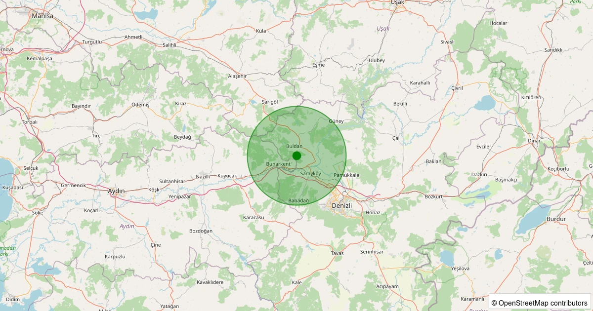 Son 7 gün içinde Buldan - Bostanyeri noktasından 100 km yarıçap içerisinde meydana gelen diğer depremler: