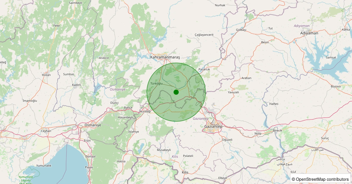 Son 7 gün içinde Kahramanmaraş noktasından 100 km yarıçap içerisinde meydana gelen diğer depremler:
