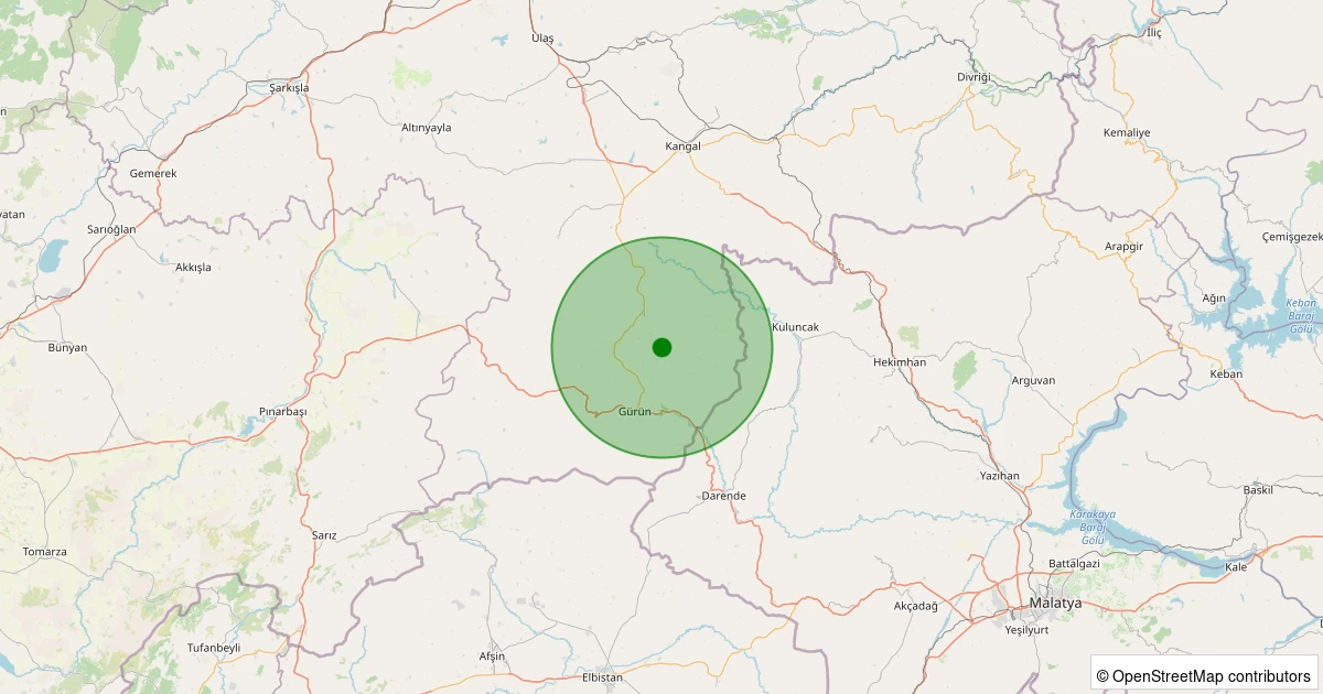Son 7 gün içinde Gürün - Karadoruk Köyü noktasından 100 km yarıçap içerisinde meydana gelen diğer depremler: