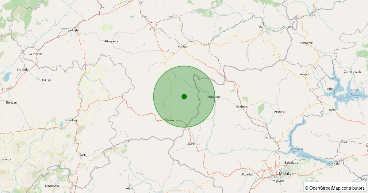 Son 7 gün içinde Gürün - Dayakpınar Köyü noktasından 100 km yarıçap içerisinde meydana gelen diğer depremler: