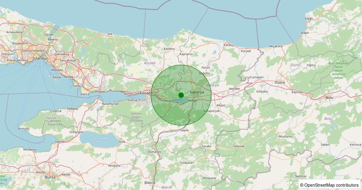 Son 7 gün içinde Serdivan - Yukarıdere noktasından 100 km yarıçap içerisinde meydana gelen diğer depremler: