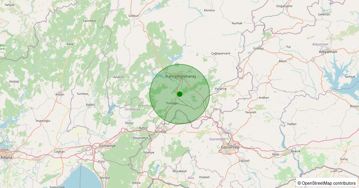 Son 7 gün içinde Dulkadiroğlu - Şerefoğlu noktasından 100 km yarıçap içerisinde meydana gelen diğer depremler: