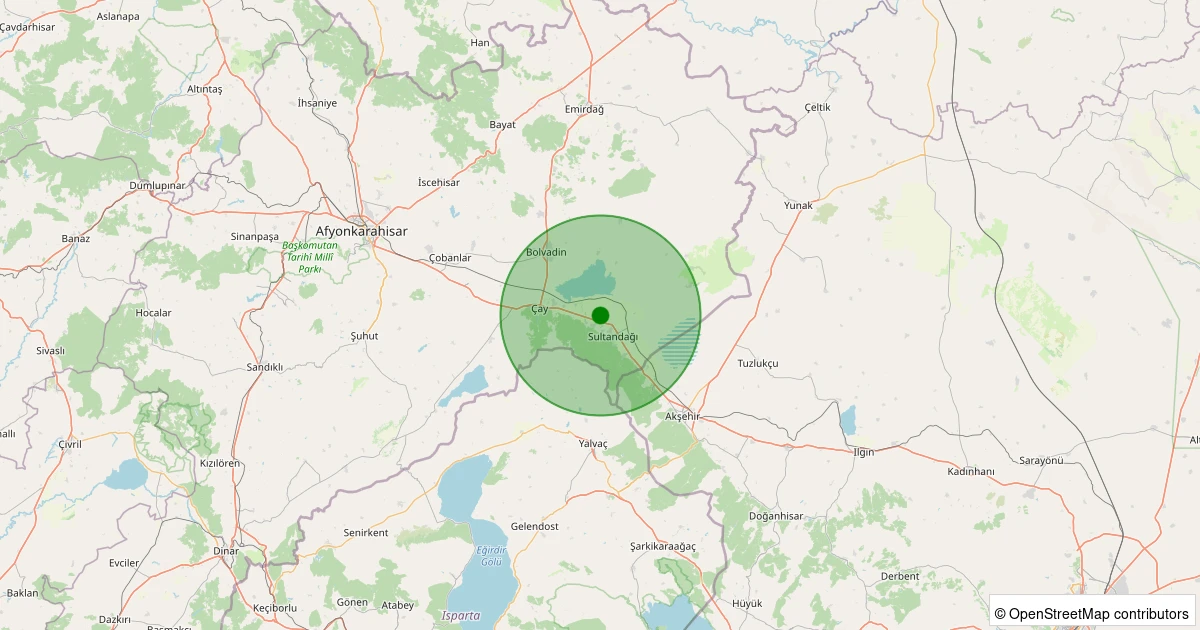 Son 7 gün içinde Sultandağı - Yakasenek/Yeni noktasından 100 km yarıçap içerisinde meydana gelen diğer depremler: